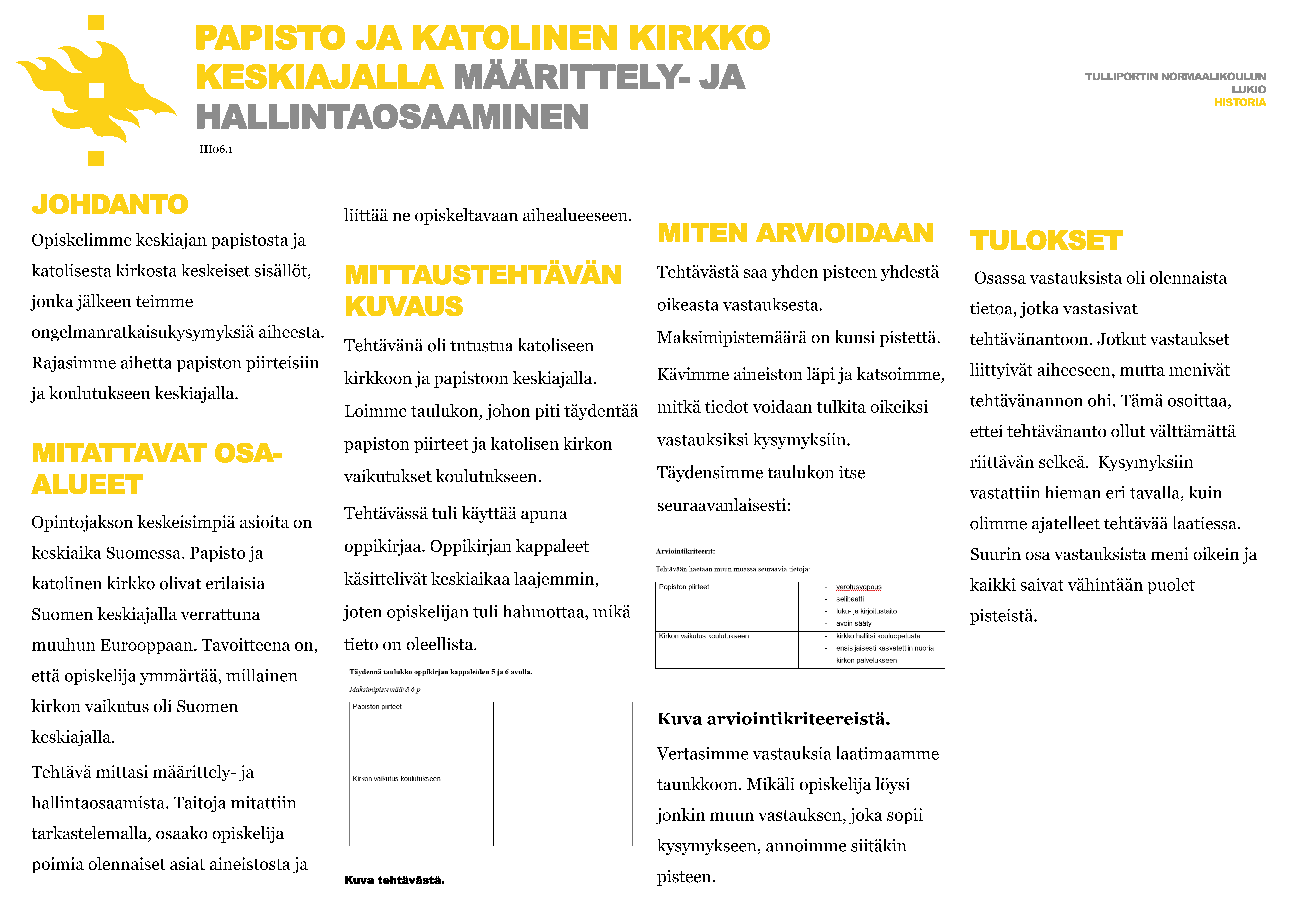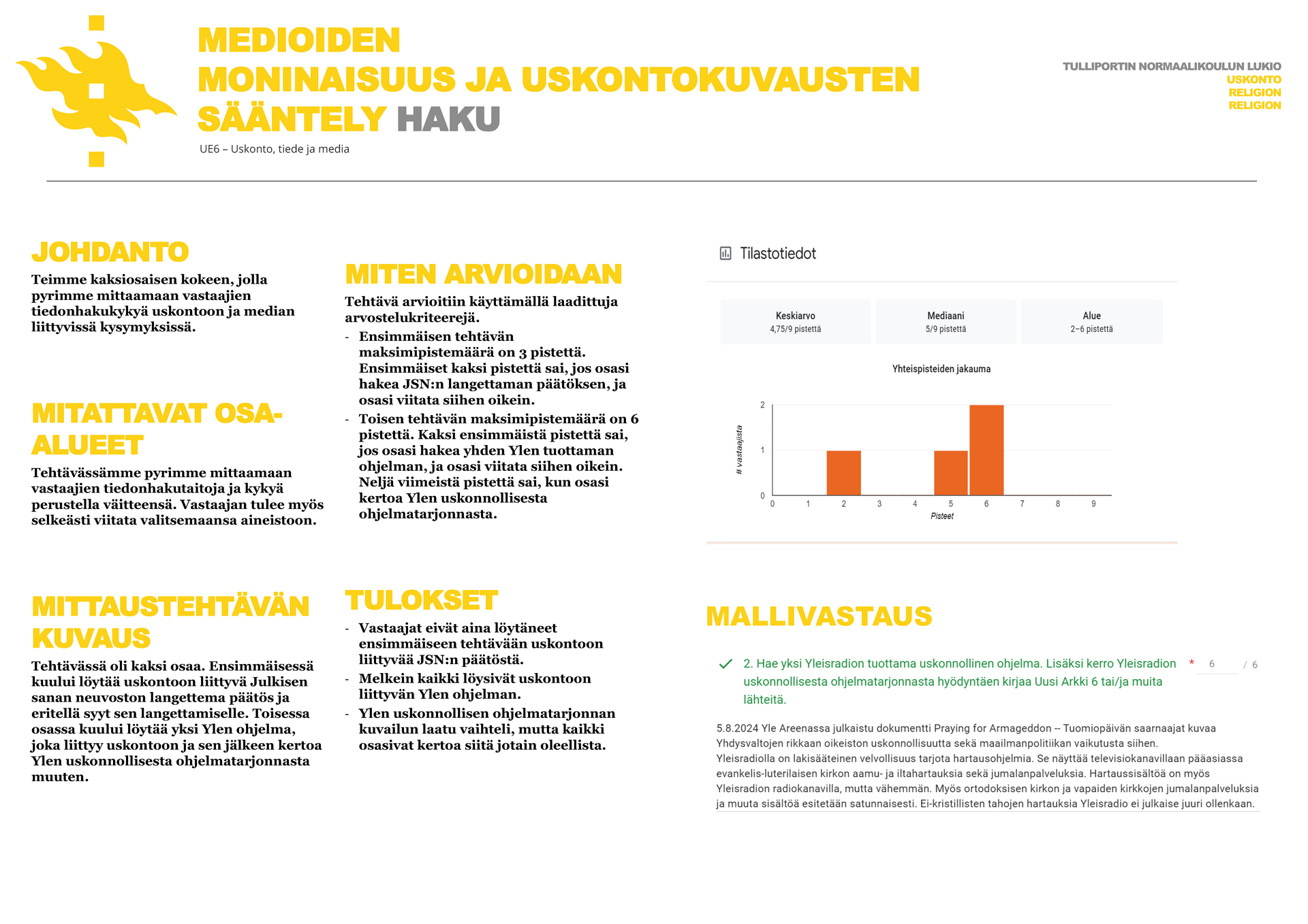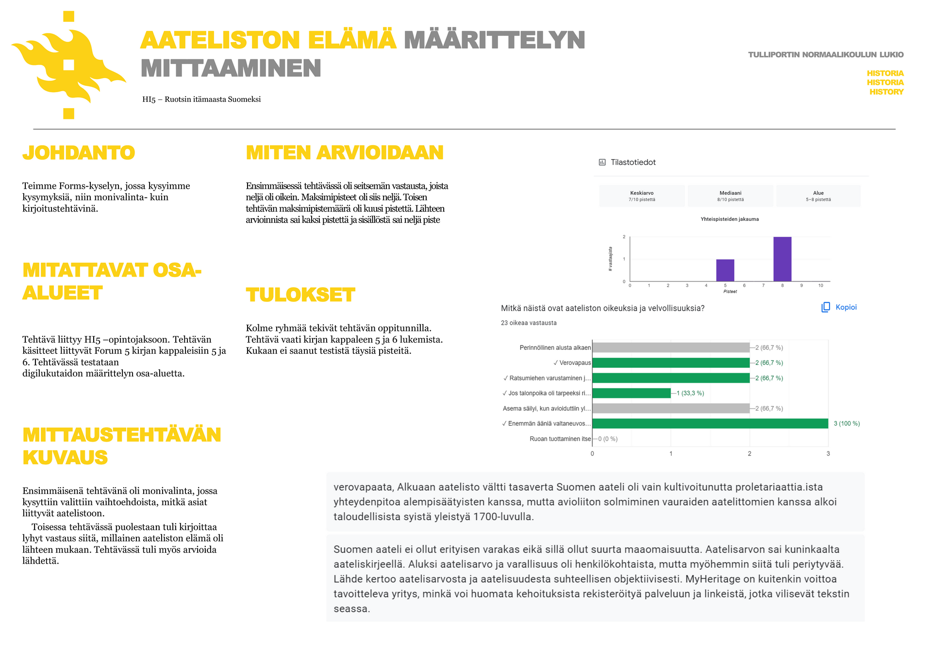 opiskelijoiden tuloksista, pohdintaa siitä oliko tehtävä onnistunut ja muita