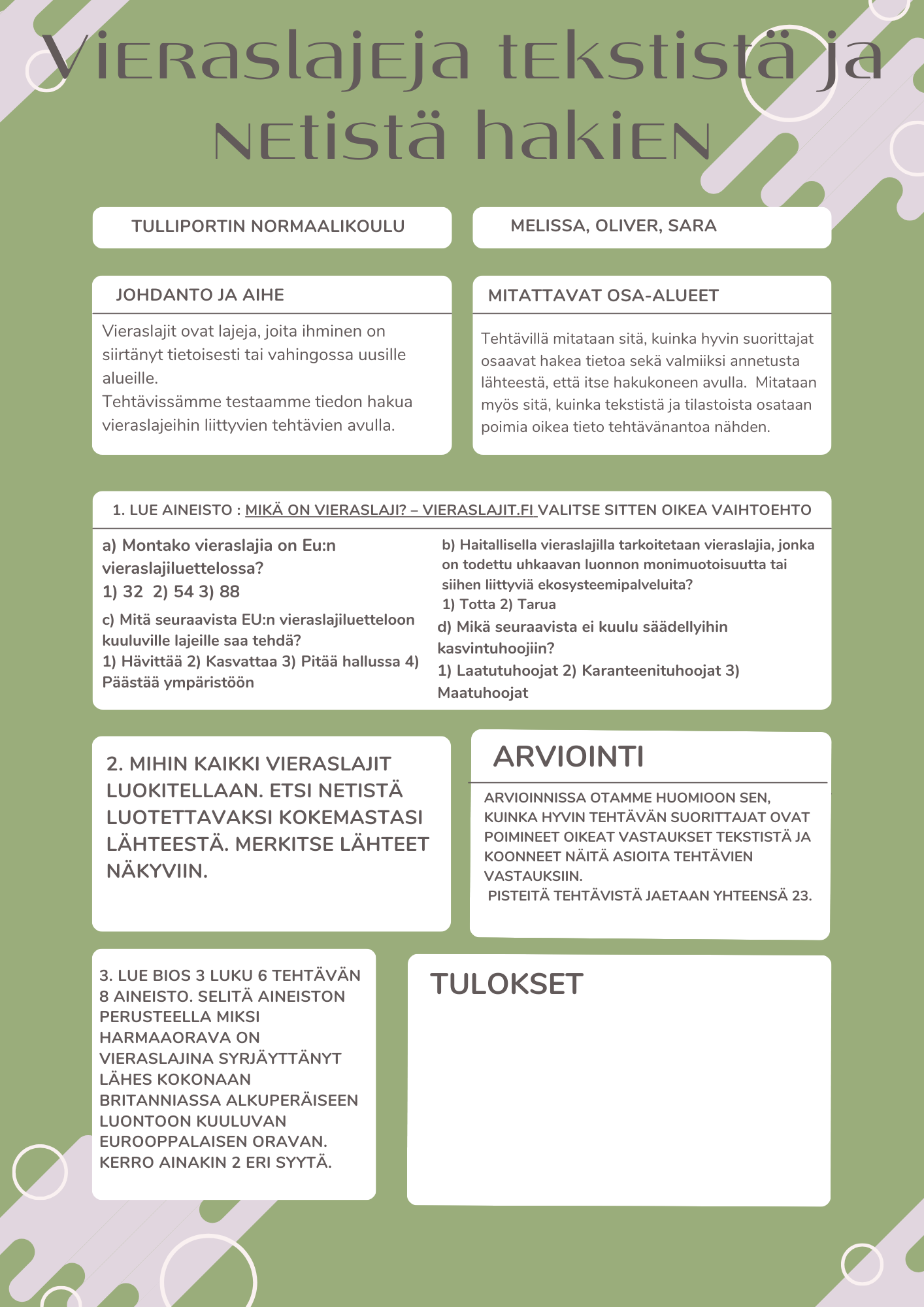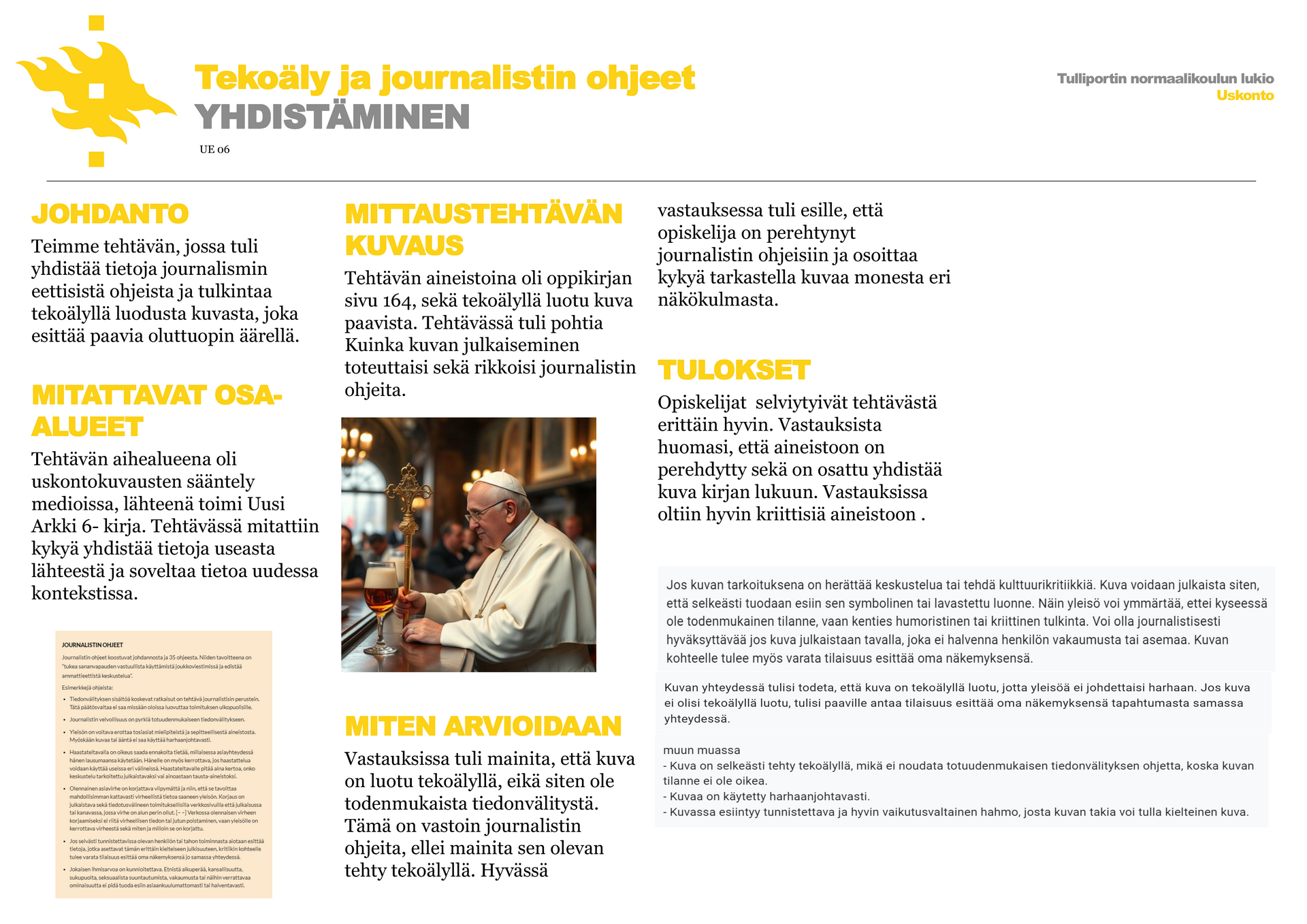 ulkopuoliseen materiaaliin, kuvia tehtävästä, koosteen tehtävään vastanneiden